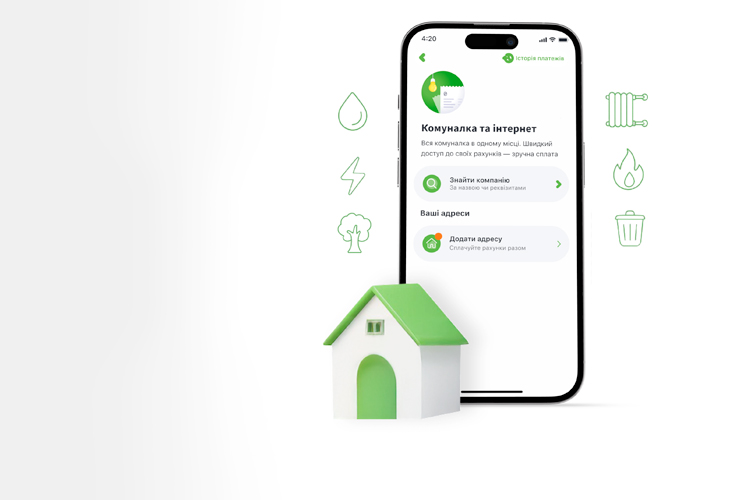 - Введіть ЄДРПОУ або IBAN компанії (можна також відсканувати камерою телефона IBAN з рахунку комунальної компанії);